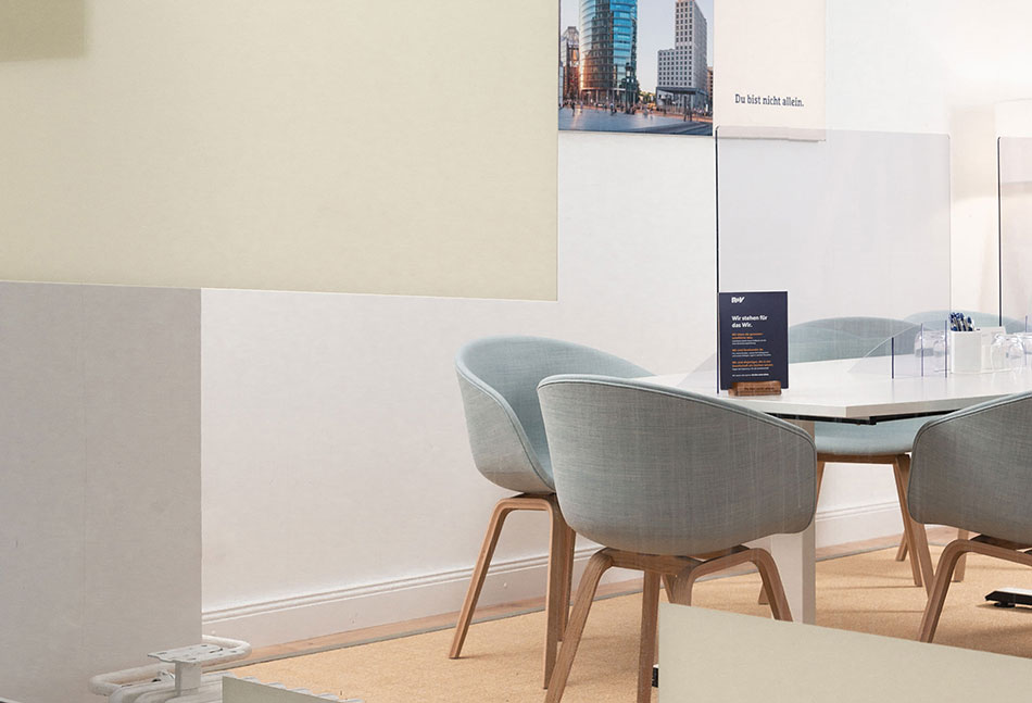 Umsetzung in den eigenen Räumlichkeiten. Einzelne Markenelemente zur Dekoration finden Sie im Genobuy-Shop.