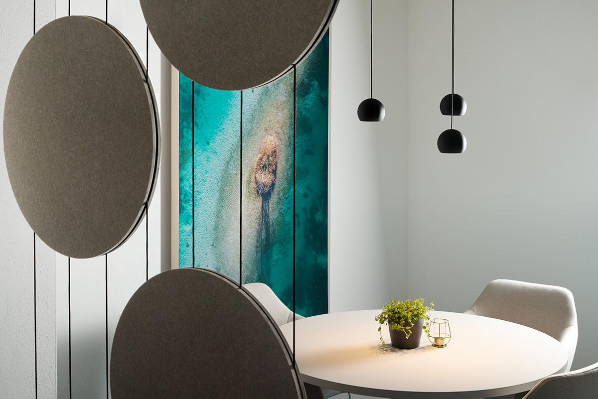 Besonders gefallen mir die verschiedenen Zonierungen, die durch das Mobiliar und die Farbigkeit entstehen. Für jede Phase des Arbeitstages gibt es in den Räumen das entsprechende Setting: Sei es, dass ich konzentriert am Schreibtisch arbeiten möchte oder mit einem Kunden in die Besprechungslounge gehe – es fühlt sich an, als würde man sich zwischen eigenen Welten bewegen.