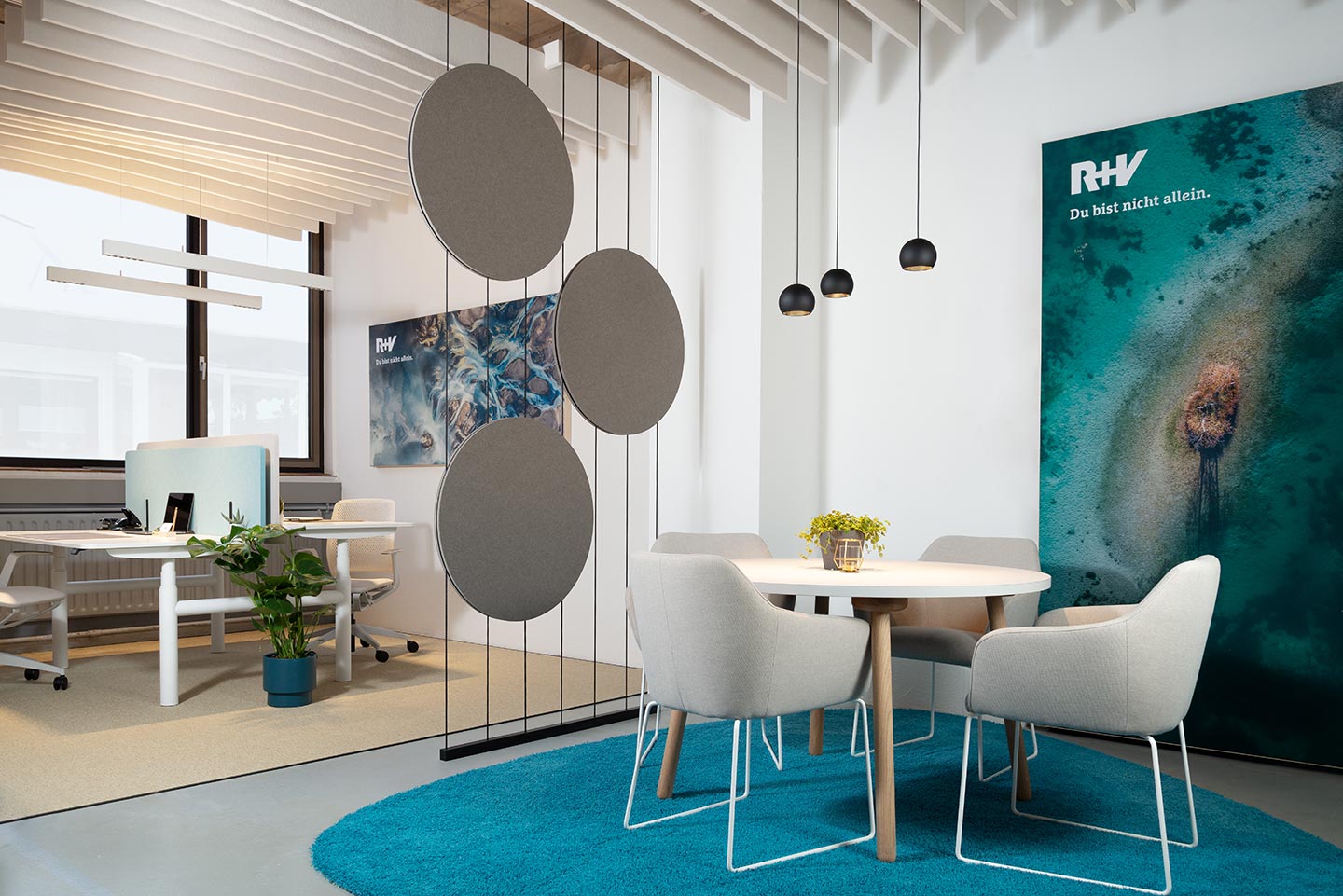 Schnell kam es zu einem Vorgespräch und die Evaluation durch R+V und Iken Design. Ich habe hier ein Full-Service-Angebot erhalten: individuelle und budgetgerechte Planung, Visualisierungen der Entwürfe, enge Abstimmungen und Änderungswünsche (sowohl gestalterisch als auch budgetär), Bestellabwicklung und Lieferung der Ausstattung, Projektbegleitung bis zur Bauleitung bei der Montage.