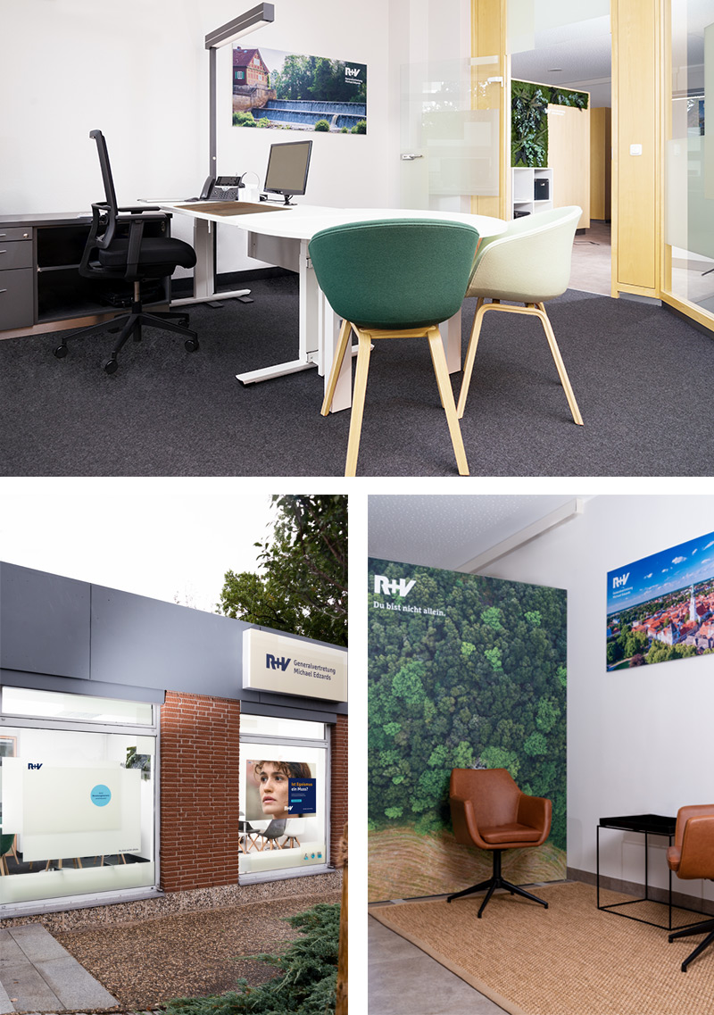 Persönlich, individuell, großzügig: Das beschreibt treffend die neu gestaltete Generalagentur der R+V in Nienhagen von Michael Edzards!