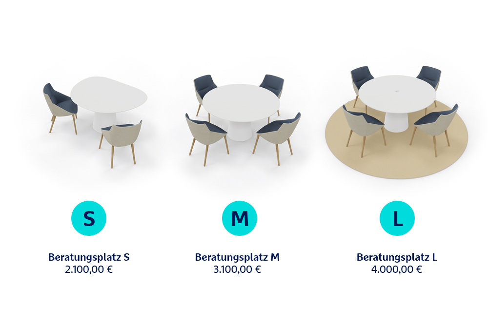 Entscheidungen werden am besten getroffen, wenn alles passt und stimmig ist. Das bezieht den Ort der Beratung mit ein. Egal, ob viel oder wenig Platz, unsere Beratungsecken geben Ihren Kunden ein gutes und sicheres Gefühl.